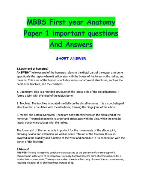 Read first year mbbs question papers and answer Kindle Editon